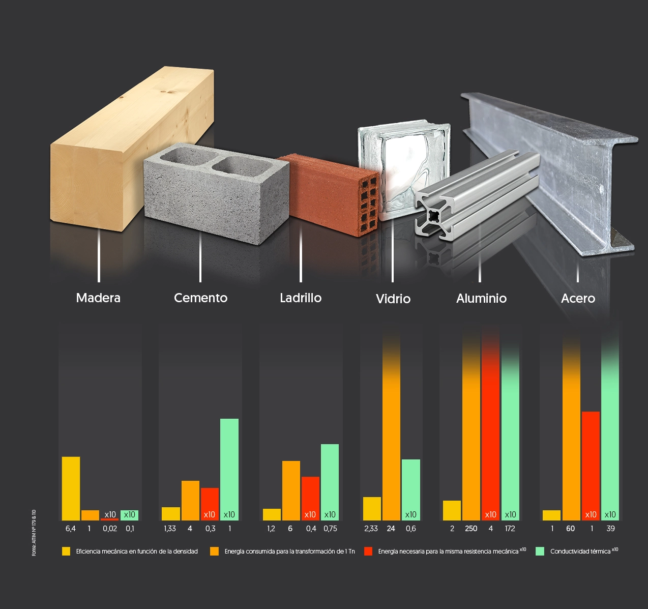 Wood has a mechanical efficiency 6.4 times higher than steel in relation to its density.