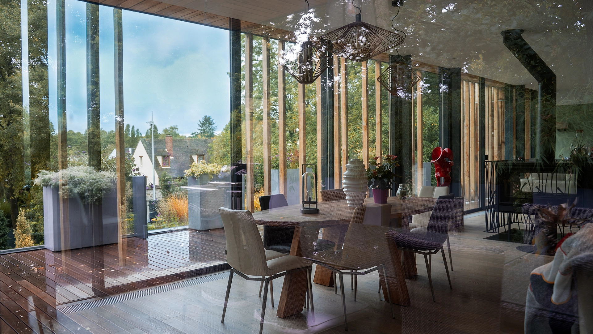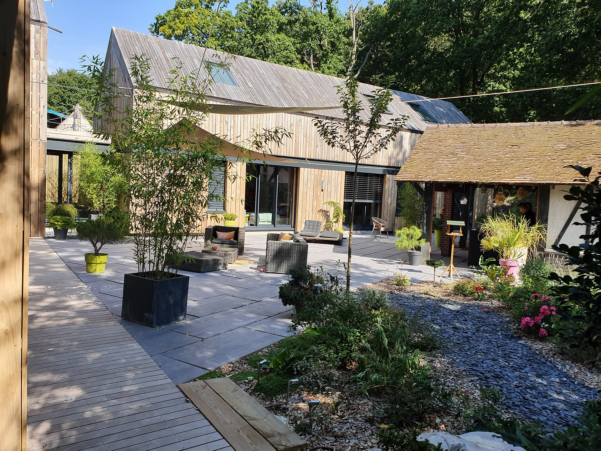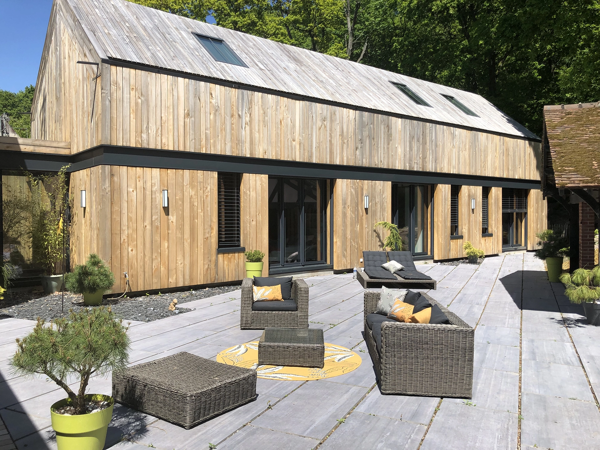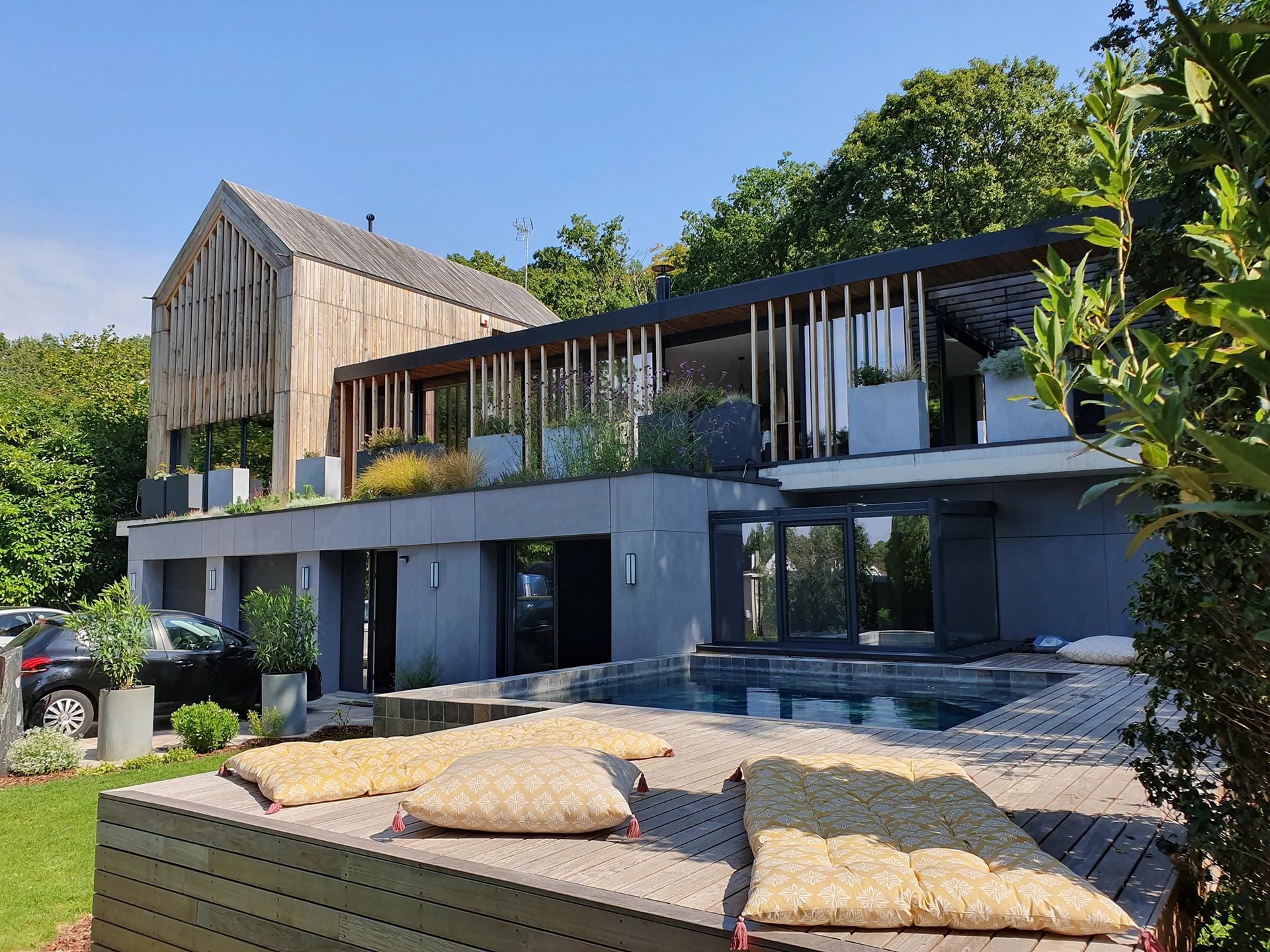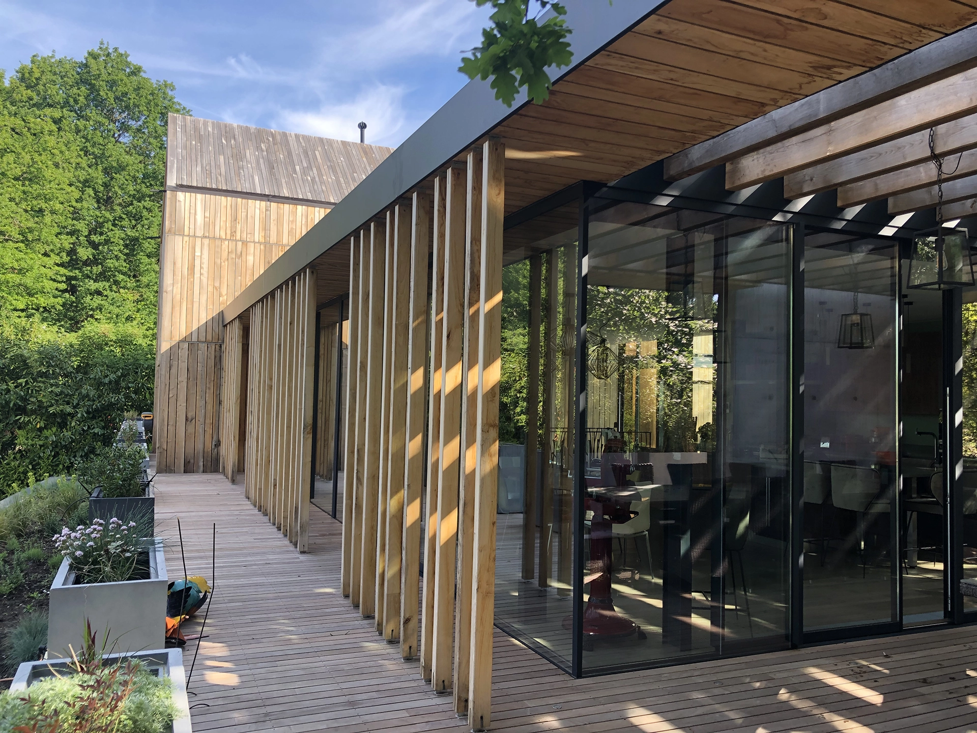Designed by architect Olivier Chopin, this single-family house was built in Timber Frame with French chestnut wood outside cladding.
