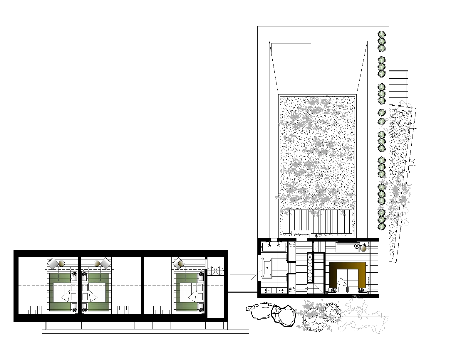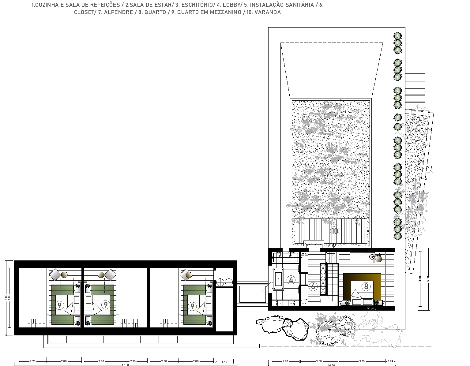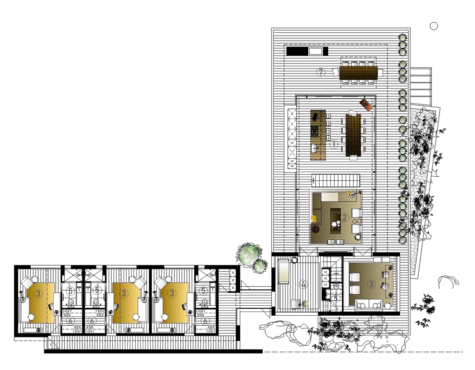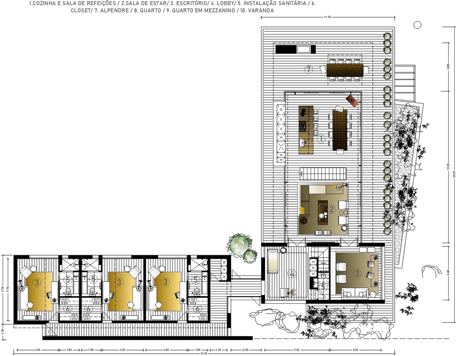 The house consists of a concrete basement and three volumes in light-frame construction: living room/day space, parental bedroom and children's bedrooms. All in a gross area of 414m².